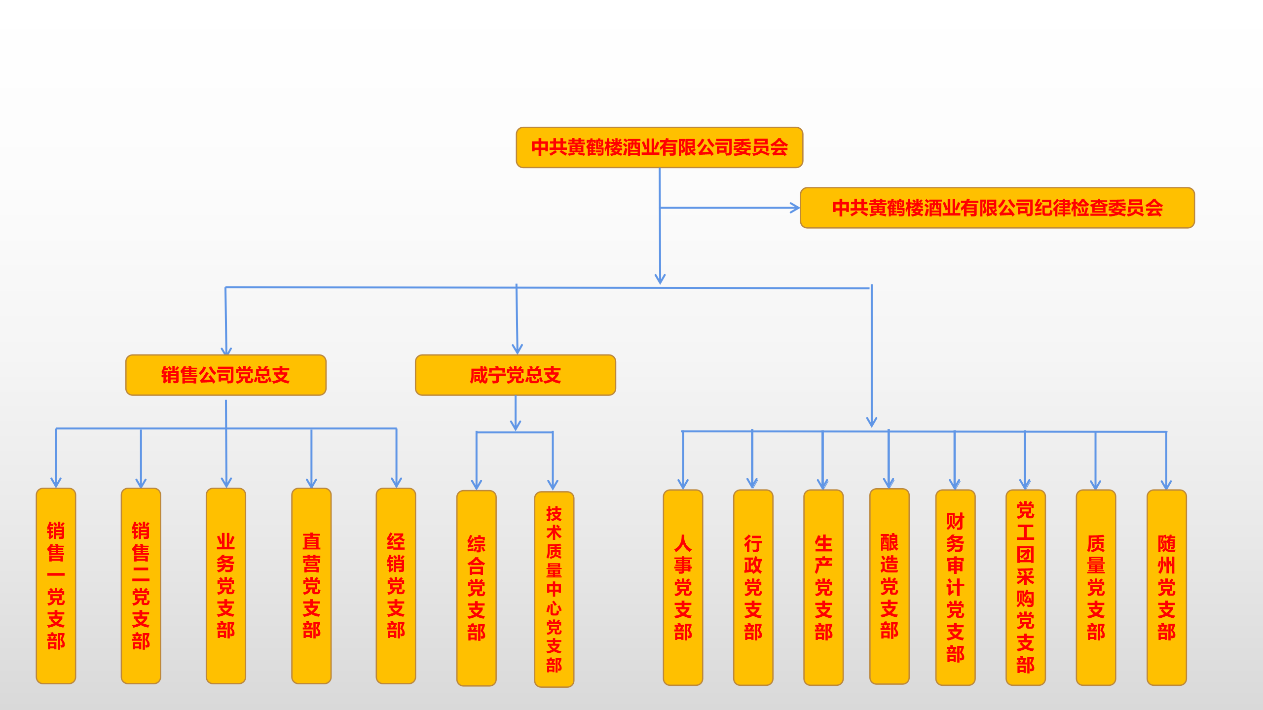 黃鶴樓酒業(yè)黨委于2010年3月成立,現(xiàn)有黨員200余人,黨委委員有7人,下設2個黨總支和15個黨支部。