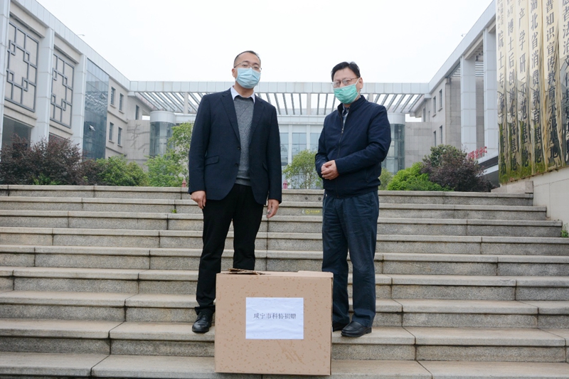 4月20日,咸寧市科學技術(shù)協(xié)會黨組書記朱必平一行慰問黃鶴樓酒業(yè)咸寧分廠,咸寧分廠廠長李良代表公司接受捐贈物資。