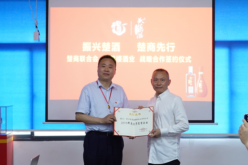 (授予黃鶴樓酒業(yè)2019年度優(yōu)秀楚商企業(yè)證書)