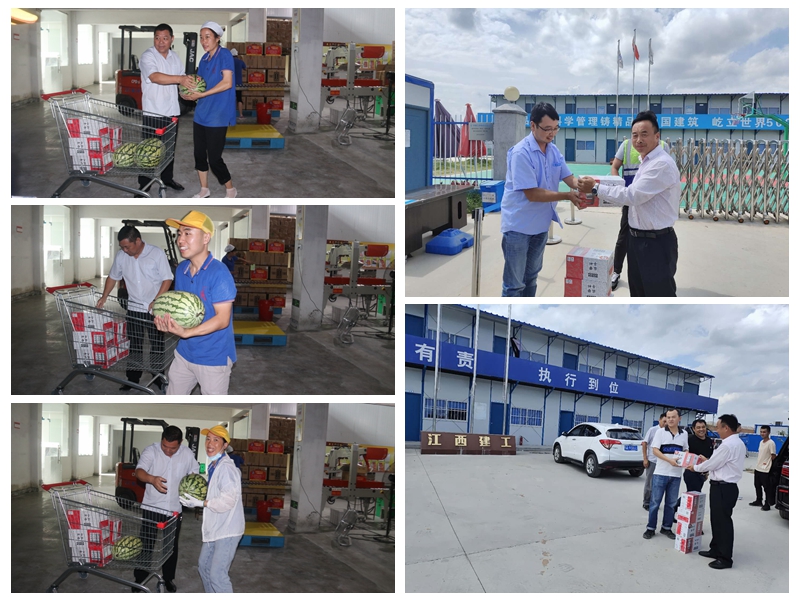 近日,隨州持續(xù)高溫天氣,黃鶴樓酒業(yè)黨委委員、隨州分廠廠長閔波平,釀造管理中心總監(jiān)助理史健代表公司分別為車間員工、項(xiàng)目施工單位等送去古樂神曲、西瓜等消暑物資,為酷暑天堅(jiān)持在一線崗位的員工送來一絲清涼。