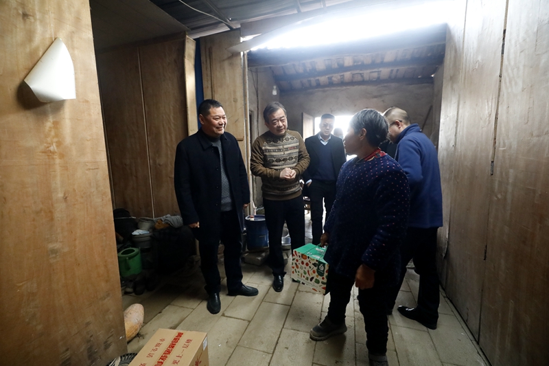 在慰問現(xiàn)場,慰問小組先后來到虹橋村、余家畈,將飽含心意的慰問品和濃濃的新年祝福送到困難群眾手中,并詳細(xì)了解他們的身體狀況、家庭生活和生產(chǎn)情況,鼓勵(lì)他們保持積極樂觀的生活態(tài)度,堅(jiān)定生活信心。臨行時(shí),困難群眾表示,在鄉(xiāng)村兩級(jí)干部和愛心企業(yè)的幫助之下,現(xiàn)在生活越來越好。