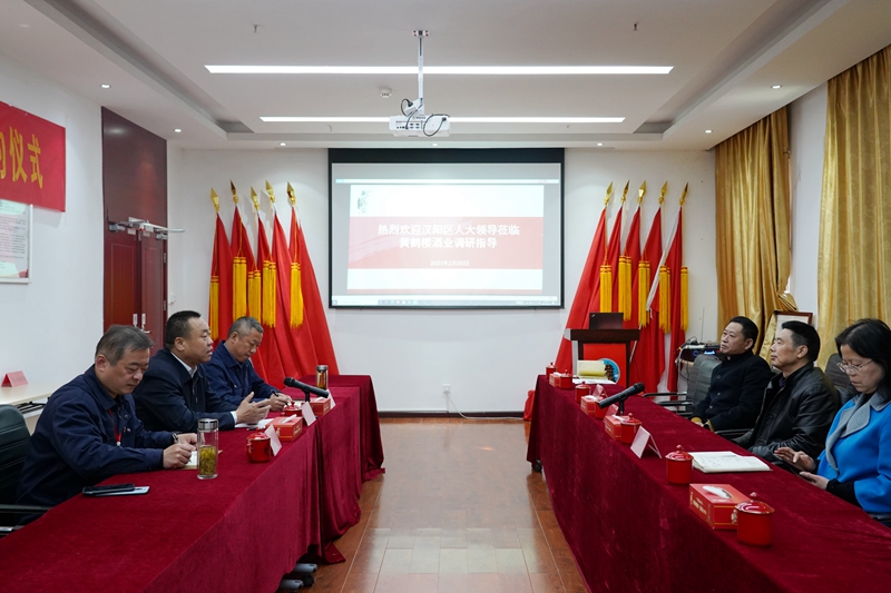 2月20日,漢陽區(qū)人大常委會副主任陶維明,區(qū)人大常委會委員王成明,區(qū)人大常委會財經(jīng)委主任周本秀一行調(diào)研黃鶴樓酒業(yè),黃鶴樓酒業(yè)黨委書記、董事長許鵬,黨委委員、總經(jīng)理助理魏國陪同調(diào)研。