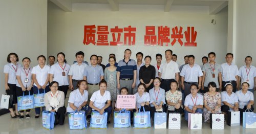 咸寧分廠廠長(zhǎng)閔波平、工會(huì)主席許鳳娥、勾調(diào)大師夏吉林及相關(guān)工作人員陪同慰問(wèn)參觀。