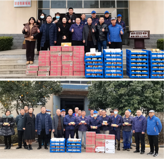 謝毅一行來到釀造車間、包裝車間、勾儲(chǔ)車間、儲(chǔ)運(yùn)部、后勤組等一線部門,向奮戰(zhàn)在工作崗位上的員工表達(dá)親切問候,并為他們送去面包、蛋糕、飲料等溫暖物資,勉勵(lì)他們站好節(jié)前最后一班崗,為公司的春節(jié)沖量做好“保障兵”。
