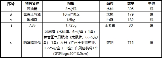 采購(gòu)中心欲對(duì)黃鶴樓酒業(yè)有限公司防暑降溫物資采購(gòu)項(xiàng)目進(jìn)行詢(xún)價(jià),確定供應(yīng)商,具體詢(xún)價(jià)事宜如下: