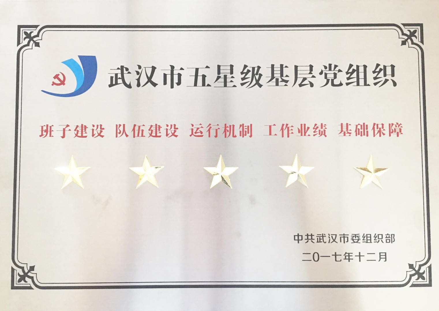 4月23日,黃鶴樓酒業(yè)獲漢陽區(qū)“五星級基層黨組織”榮譽稱號,該獎項由漢陽區(qū)委組織部評選并報武漢市委組織部審定。公司黨委將通過深入開展“星級爭創(chuàng)”活動,不斷發(fā)揮星級標桿的導向作用和星級評定的激勵作用。