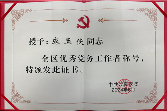 麻玉俠獲“漢陽區(qū)優(yōu)秀黨務(wù)工作者”稱號