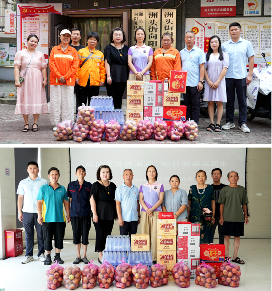 7月24日,黃鶴樓酒業(yè)黨委委員、副總經(jīng)理魏國先后到向陽社區(qū)、洲頭社區(qū)慰問一線環(huán)衛(wèi)工作人員,洲頭街道黨工委副書記、辦事處主任湯雯,區(qū)域發(fā)展辦主任王磊,向陽社區(qū)黨委書記謝麗莎,洲頭社區(qū)黨委書記向婷熱情接待。