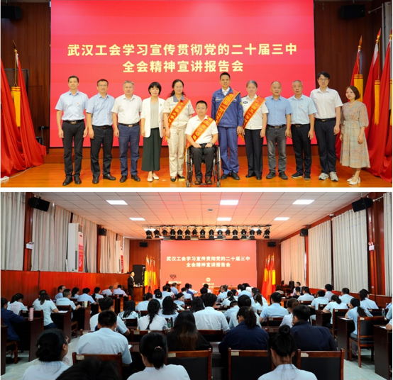 9月14日,武漢工會學習宣傳貫徹黨的二十屆三中全會精神宣講報告會在黃鶴樓酒業(yè)舉行,武漢市總工會黨組成員、副主席李律,市總工會宣教部部長曹晶,漢陽區(qū)人大常委會副主任、區(qū)總工會主席周立強,區(qū)總工會黨組書記、常務副主席李鐘,副主席謝國珍出席會議,武漢市勞模工匠宣講團成員胡文兵、王群、胡驚雷、尹利受邀講課,黃鶴樓酒業(yè)監(jiān)事長黃曉文,黨委委員、副總經(jīng)理王超,黨委委員、副總經(jīng)理、工會主席魏國參加會議。