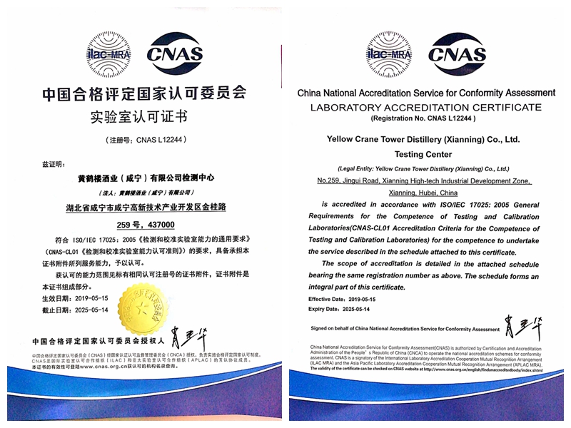 近日,黃鶴樓酒業(yè)咸寧檢測中心通過CNAS(中國合格評定國家認(rèn)可委員會)認(rèn)可,獲得由中國合格評定國家認(rèn)可委員會(CNAS)頒發(fā)的國家實驗室認(rèn)可證書。