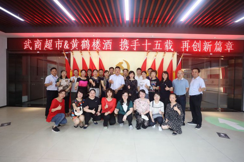 6月18日,武商超市總經(jīng)理朱曦,副總經(jīng)理李萌帶領(lǐng)市內(nèi)核心門店店長、外圍分公司總經(jīng)理等26人參觀黃鶴樓酒業(yè)。黃鶴樓酒業(yè)總經(jīng)理助理、銷售公司常務(wù)副總經(jīng)理王超接待來訪。