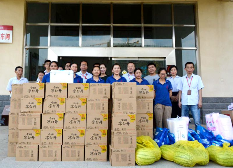 朱明鳳一行給黃鶴樓酒業(yè)員工送來了礦泉水、西瓜、醫(yī)藥箱及毛巾等物資,并對員工的工作和生活情況表示關心與關愛。