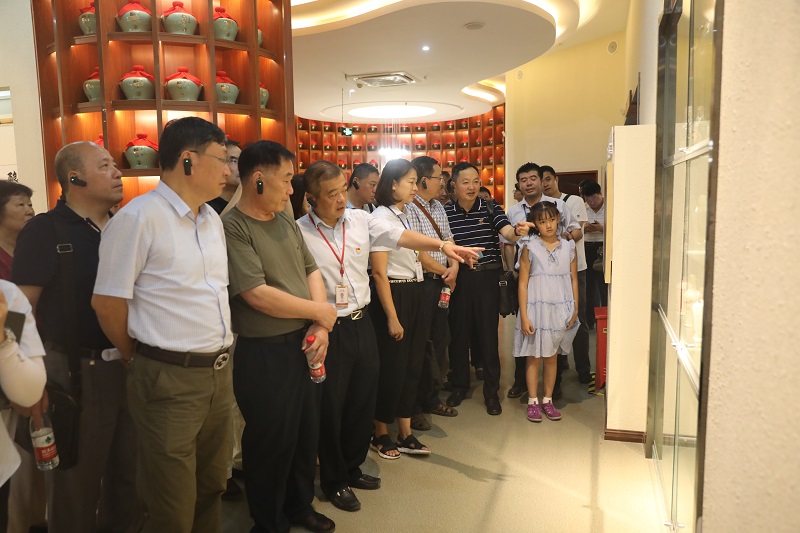 文增顯一行依次參觀了黃鶴樓酒業(yè)酒文化博物館、天成坊釀造車間、黨建文化館、名人酒窖。隨后,文增顯一行在博物館三樓會議室開展座談會。