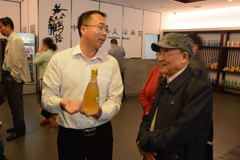 向其柏一行參觀了商貿(mào)中心、黃鶴樓酒文化館、美酒銀行、桂花清酒生產(chǎn)車間。在商貿(mào)中心,李良詳細(xì)介紹黃鶴樓桂花清酒的優(yōu)質(zhì)生產(chǎn)原料、釀造技藝和生產(chǎn)規(guī)模,并邀請向其柏一行品嘗黃鶴樓原酒,向其柏稱贊黃鶴樓酒一線喉,實(shí)在是好酒好酒。