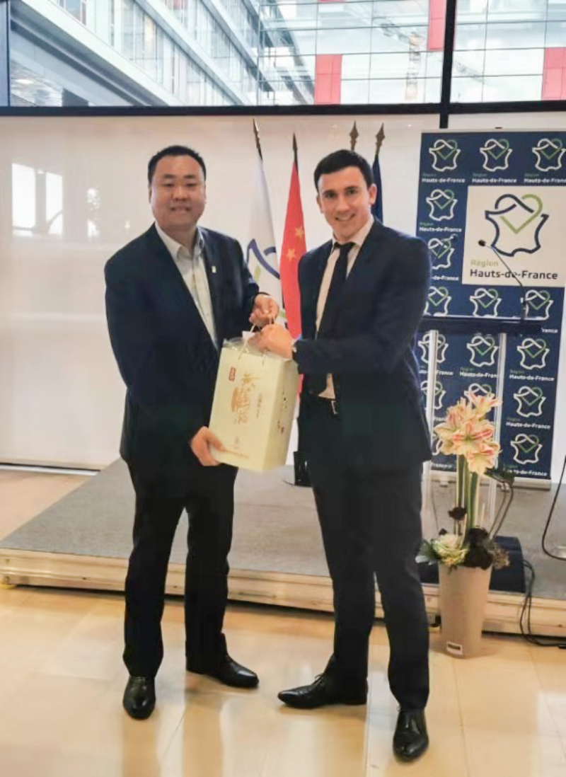活動期間,許鵬還隨代表團拜訪了法國巴黎大區(qū)工商會、巴黎世貿(mào)中心、法蘭克福世貿(mào)中心、德中經(jīng)濟聯(lián)合會等,開展了項目洽談和對口交流,并贈予相關(guān)人員黃鶴樓大清香酒,以示友好。