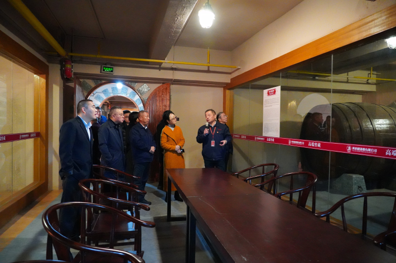 盧堅(jiān)勝一行參觀了天成坊釀造車(chē)間、名人酒窖和黨建文化館,并品鑒了黃鶴樓大清香原酒。品鑒過(guò)后,盧堅(jiān)勝對(duì)酒的品質(zhì)大加贊賞,表示“在橡木桶中儲(chǔ)存后的酒,更醇、更柔、更香,好喝。”